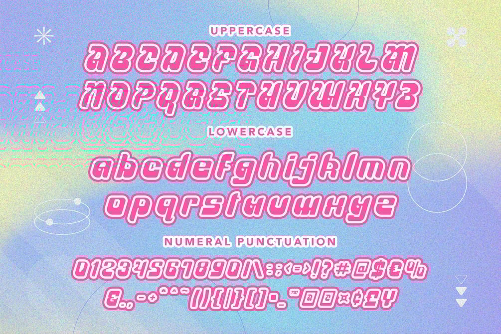 Gencity Typeface is a cute and fun font. A font inspired by the current K-POP trend, this font I created is very much used this year & is very versatile, it goes well with various designs, elevating it to the highest level. Add this font to your favorite creative ideas and see the results!